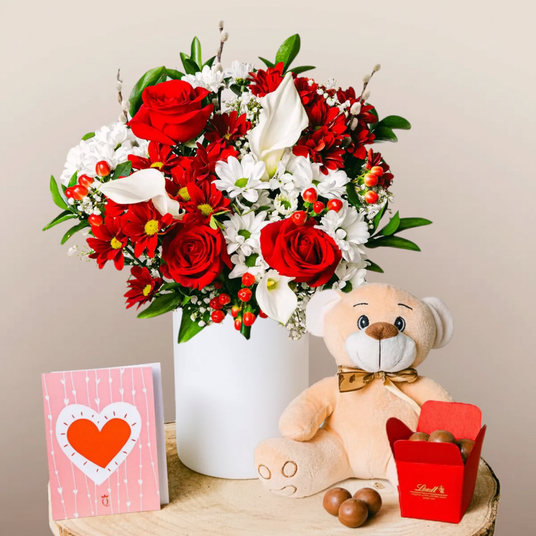 Buchet de Flori cu Bomboane și Urs de Pluș – Livrare Rapidă 2-4 Ore Surprinde-ți persoana iubită cu o combinație perfectă de eleganță și tandreță. Acest buchet premium reunește flori proaspete și colorate, bomboane de calitate și un urs de pluș moale, ideal pentru orice ocazie specială. Livrare rapidă în 2-4 ore în principalele zone urbane. Fiecare aranjament este pregătit cu grijă de floristul nostru pentru a asigura prospețimea și frumusețea maximă la sosire. Alegerea ideală pentru a exprima sentimente sincere și a crea momente memorabile.