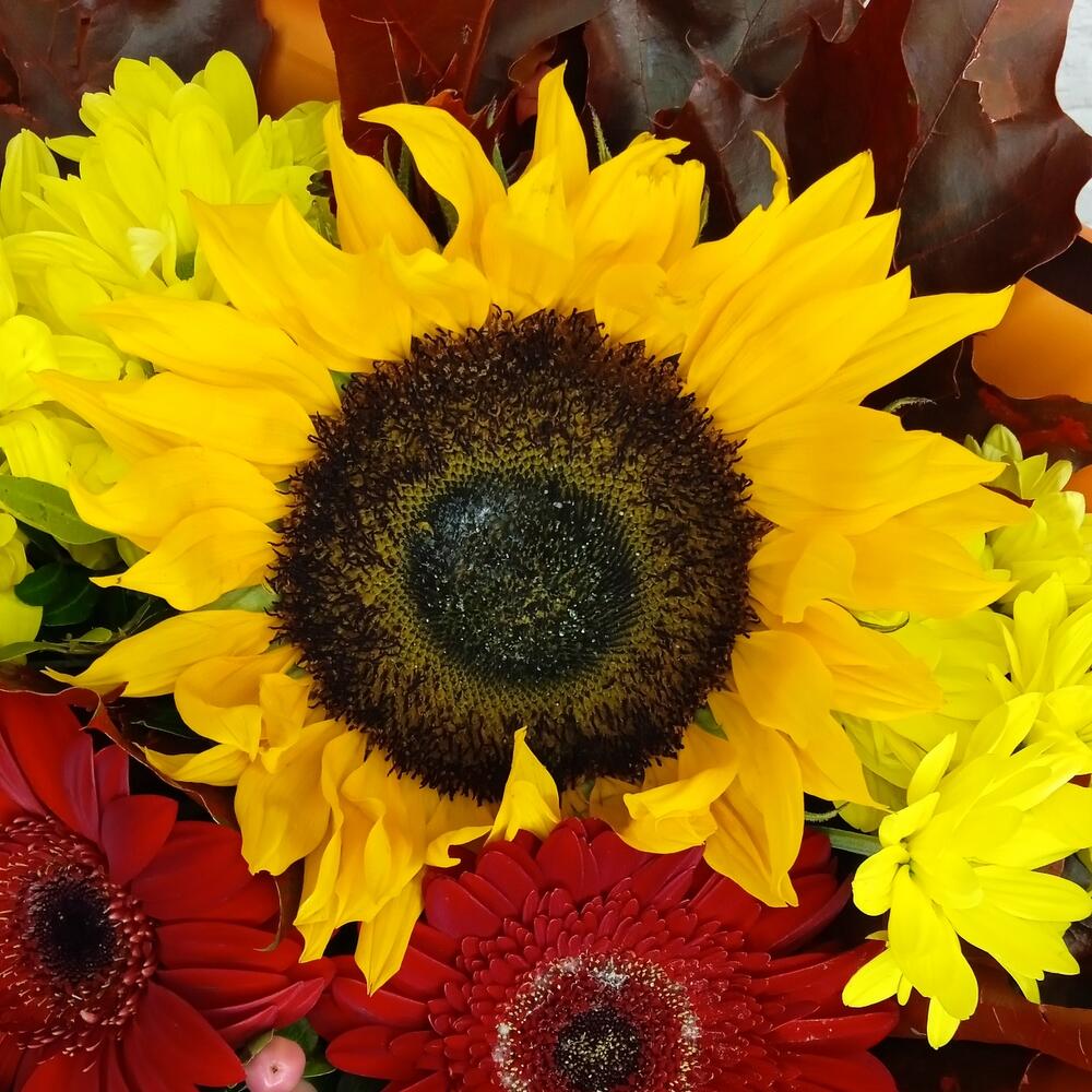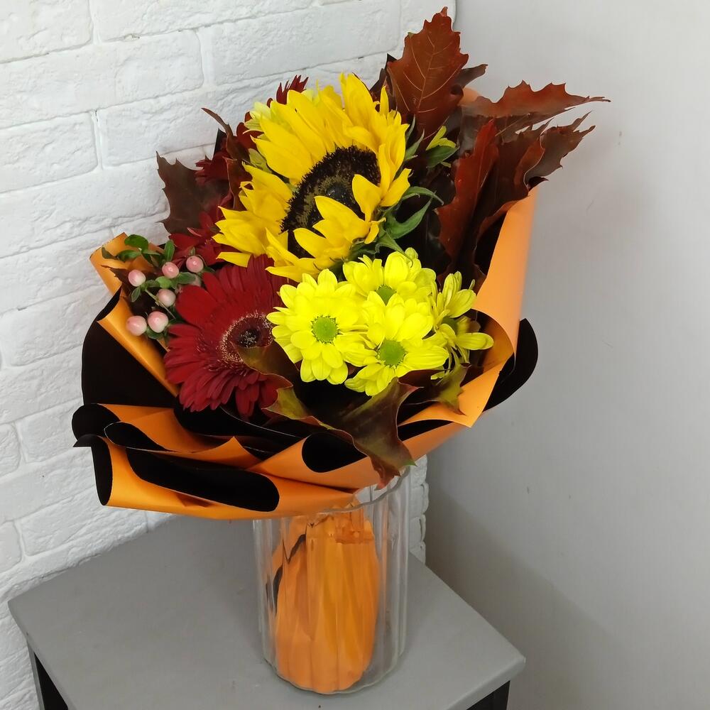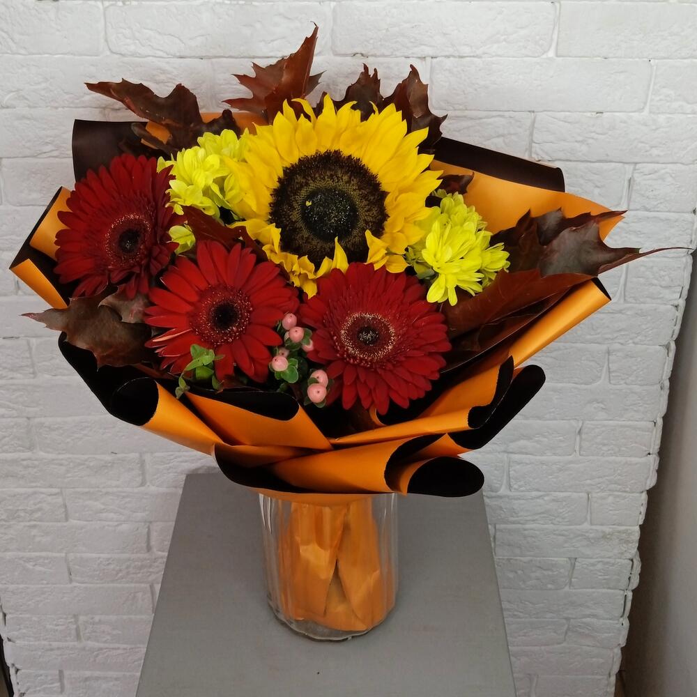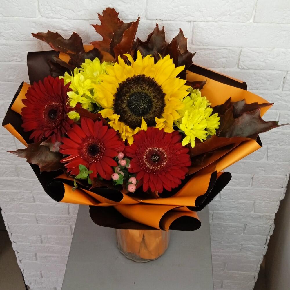 Buchet de Toamnă cu Gerbera, Floarea Soarelui și Crizantemă