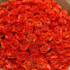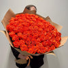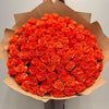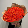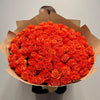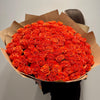Buchetul conține 101 fire de trandafiri portocalii și ambalaj.