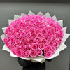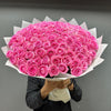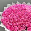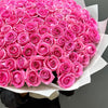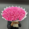 Buchetul conține 101 fire de trandafiri roz și ambalaj.