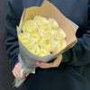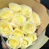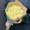 Buchetul conține 11 fire de trandafiri albi și ambalaj.