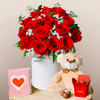 Exprimă-ți sentimentele cu acest buchet romantic compus din 11 trandafiri roșii proaspeți, completat cu un urs de pluș moale și bomboane delicioase. Ideal pentru aniversări, declarații de dragoste sau orice moment special care merită să fie memorabil. Livrare rapidă în 2-4 ore oriunde în zonă, asigurând că cadoul tău ajunge proaspăt și în timp util. Comandă acum și surprinde-ți persoana iubită cu eleganță și grijă.