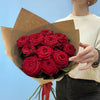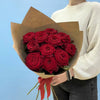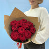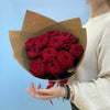 Buchetul conține 11 fire de trandafiri roșii și ambalaj.