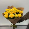 Buchetul conține 15 fire de trandafiri galbeni și ambalaj.
