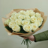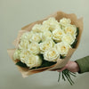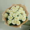 Buchetul conține 17 fire de trandafiri albi și ambalaj.