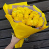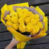 Buchetul conține 21 fire de trandafiri galbeni și ambalaj.