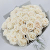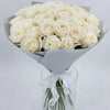 Buchetul conține 35 fire de trandafiri albi și ambalaj.