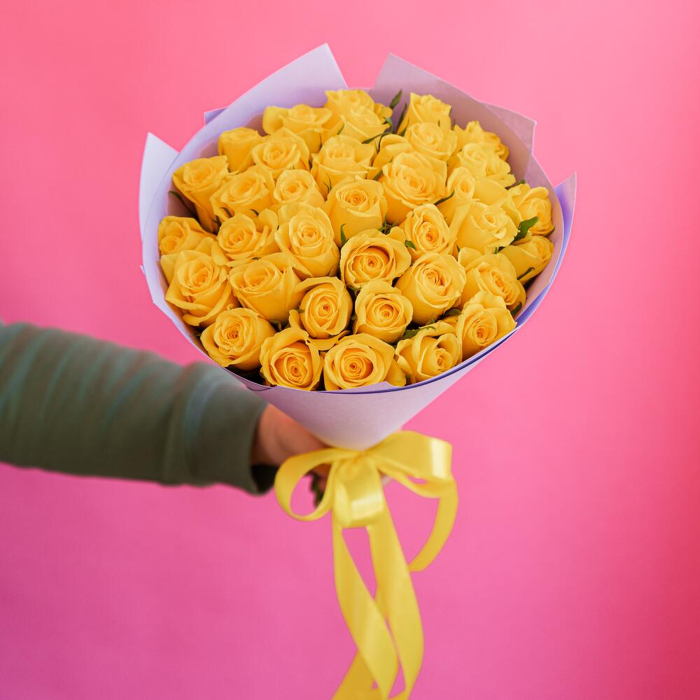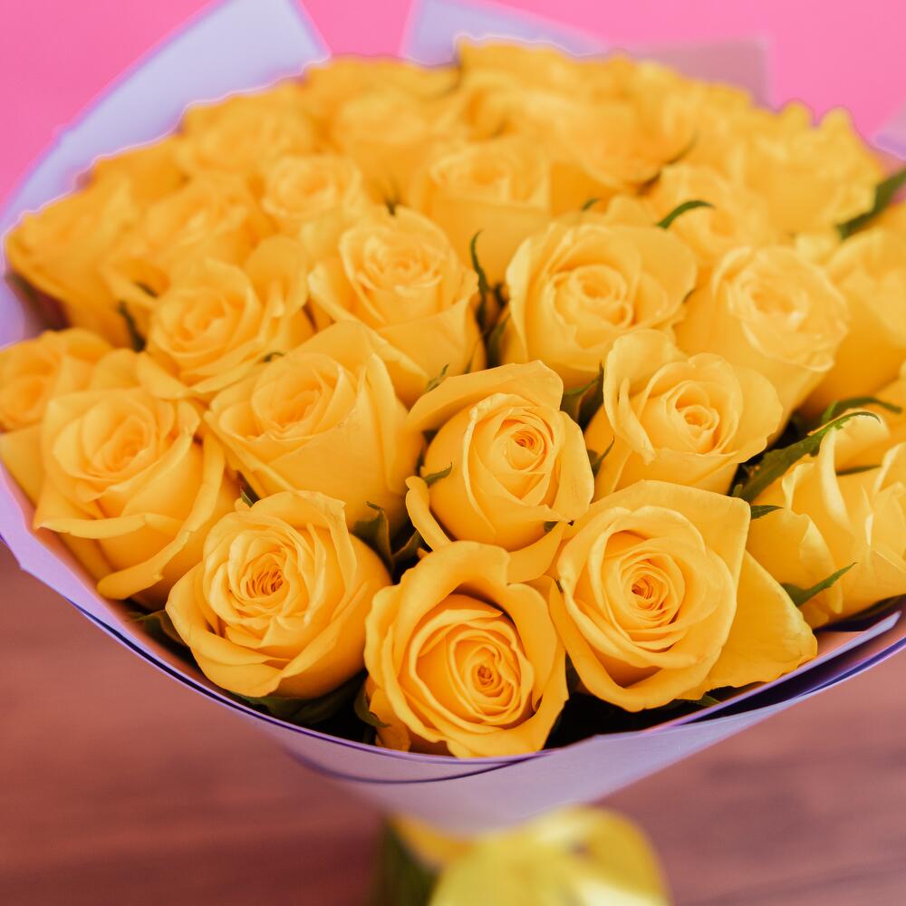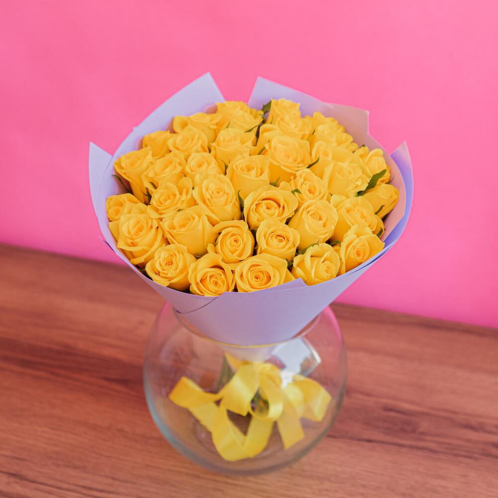 Buchetul conține 35 fire de trandafiri galbeni și ambalaj.