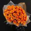 Buchetul conține 35 fire de trandafiri portocalii și ambalaj.