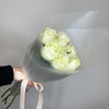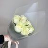 Buchetul conține 7 fire de trandafiri albi și ambalaj.