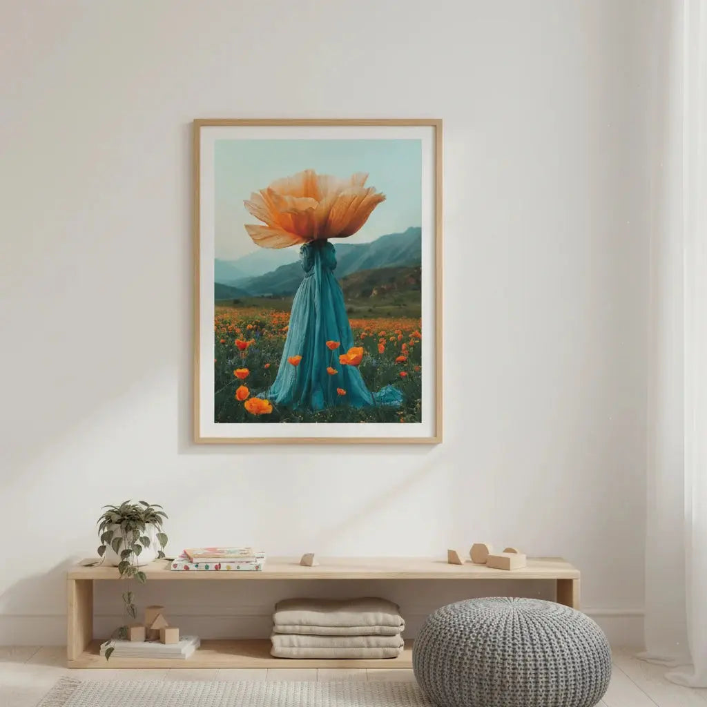 A serene figure standing in a glowing field of flowers, wrapped in warm light and stillness. A gentle artwork to inspire hope.