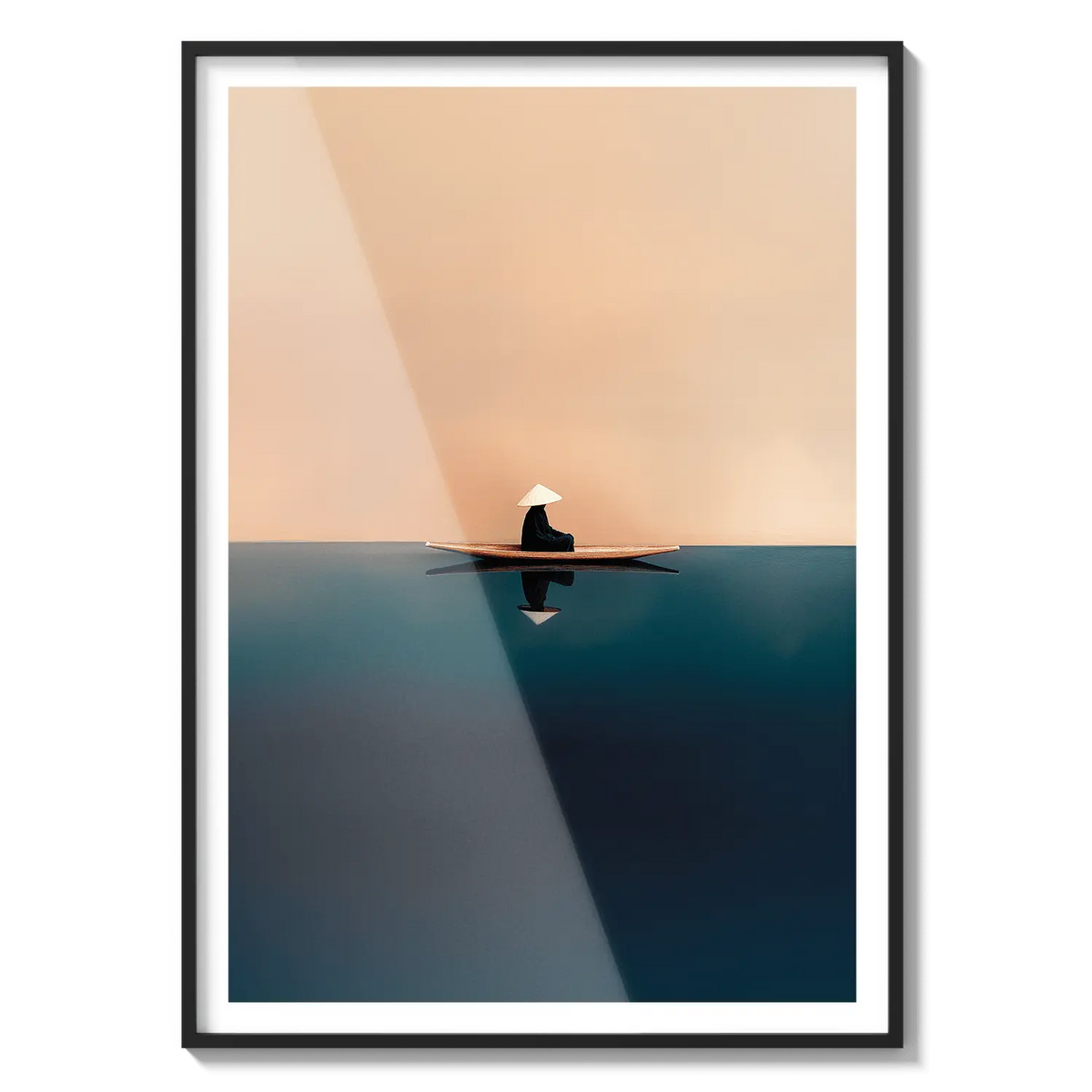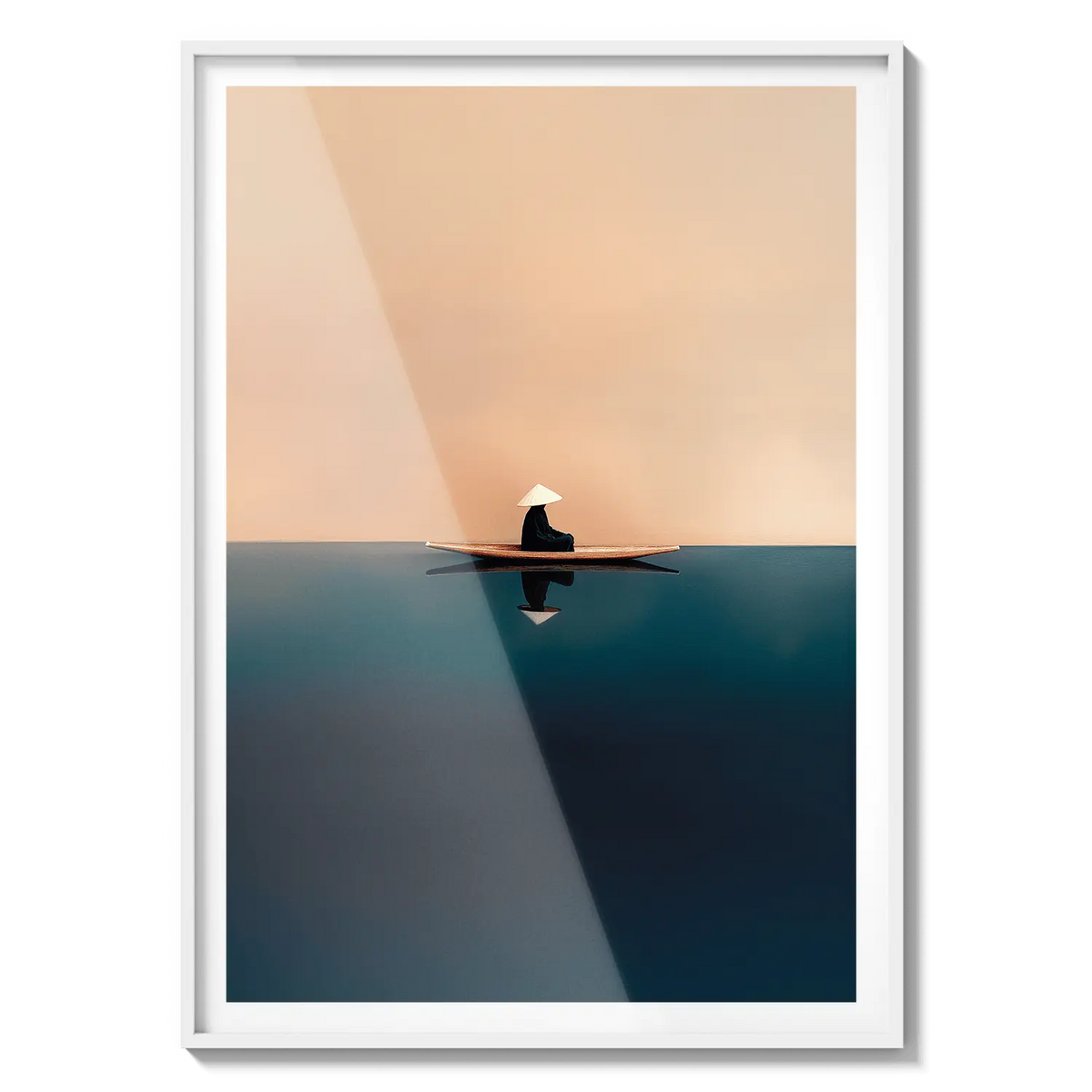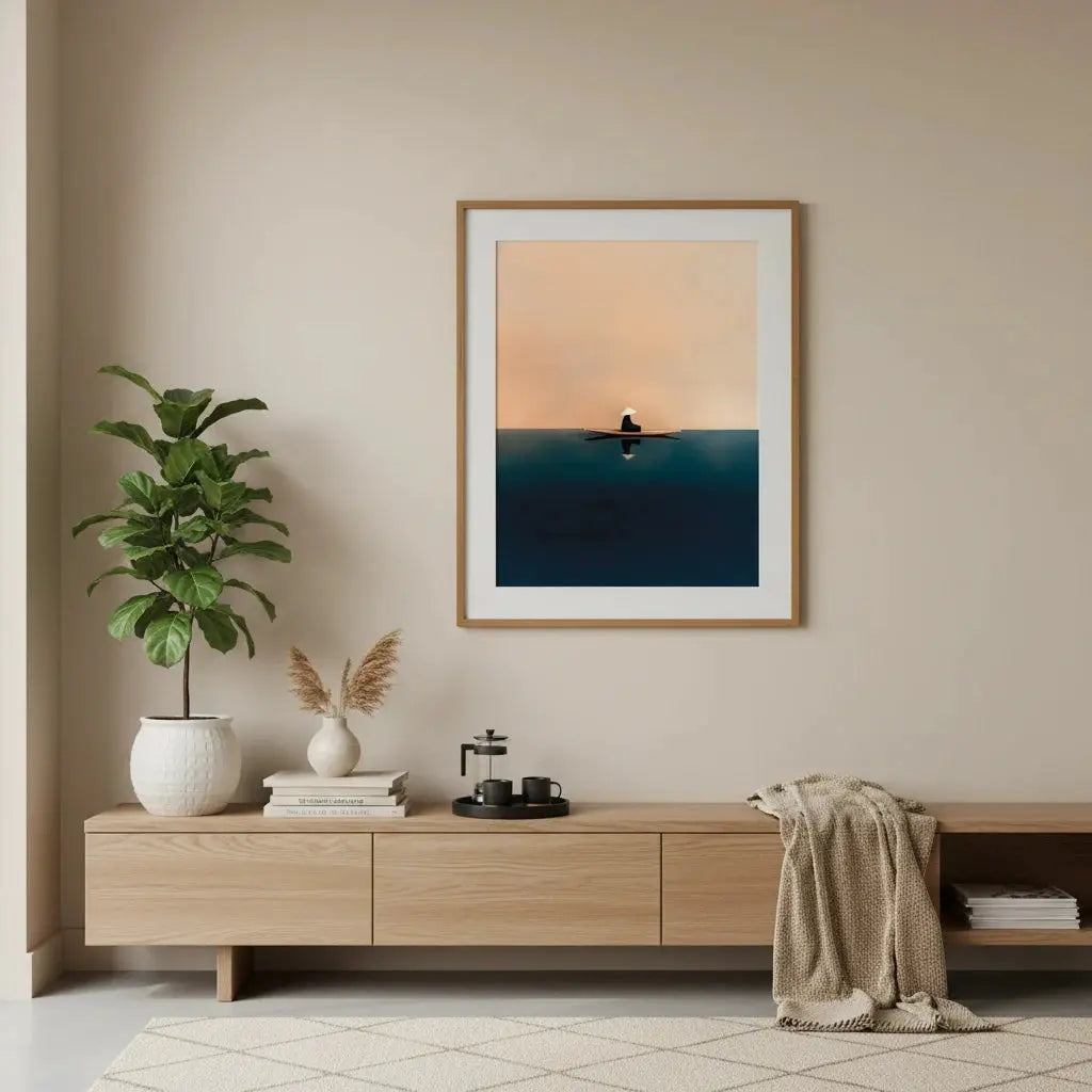 A quiet sailboat drifting across soft orange and blue waters, offering calm and contemplation. A peaceful, grounding gift.