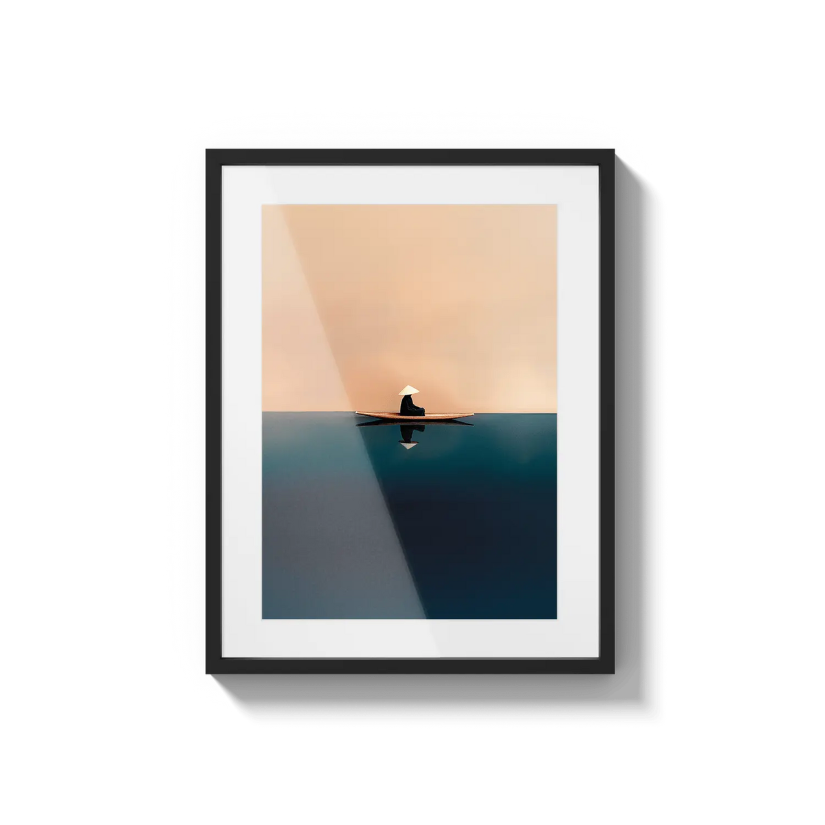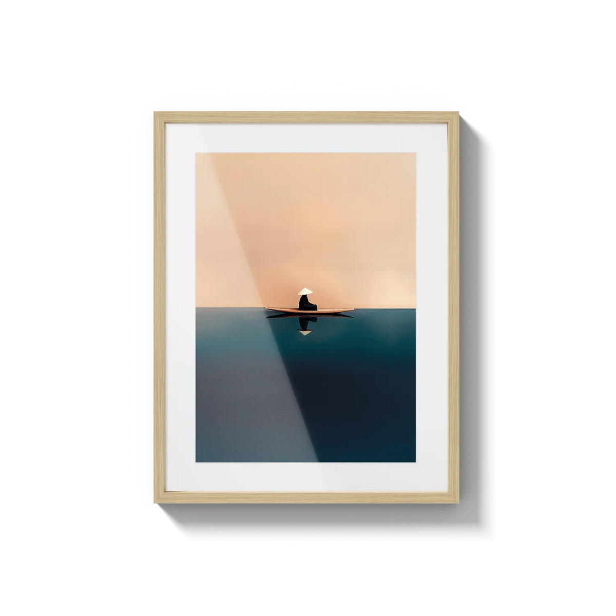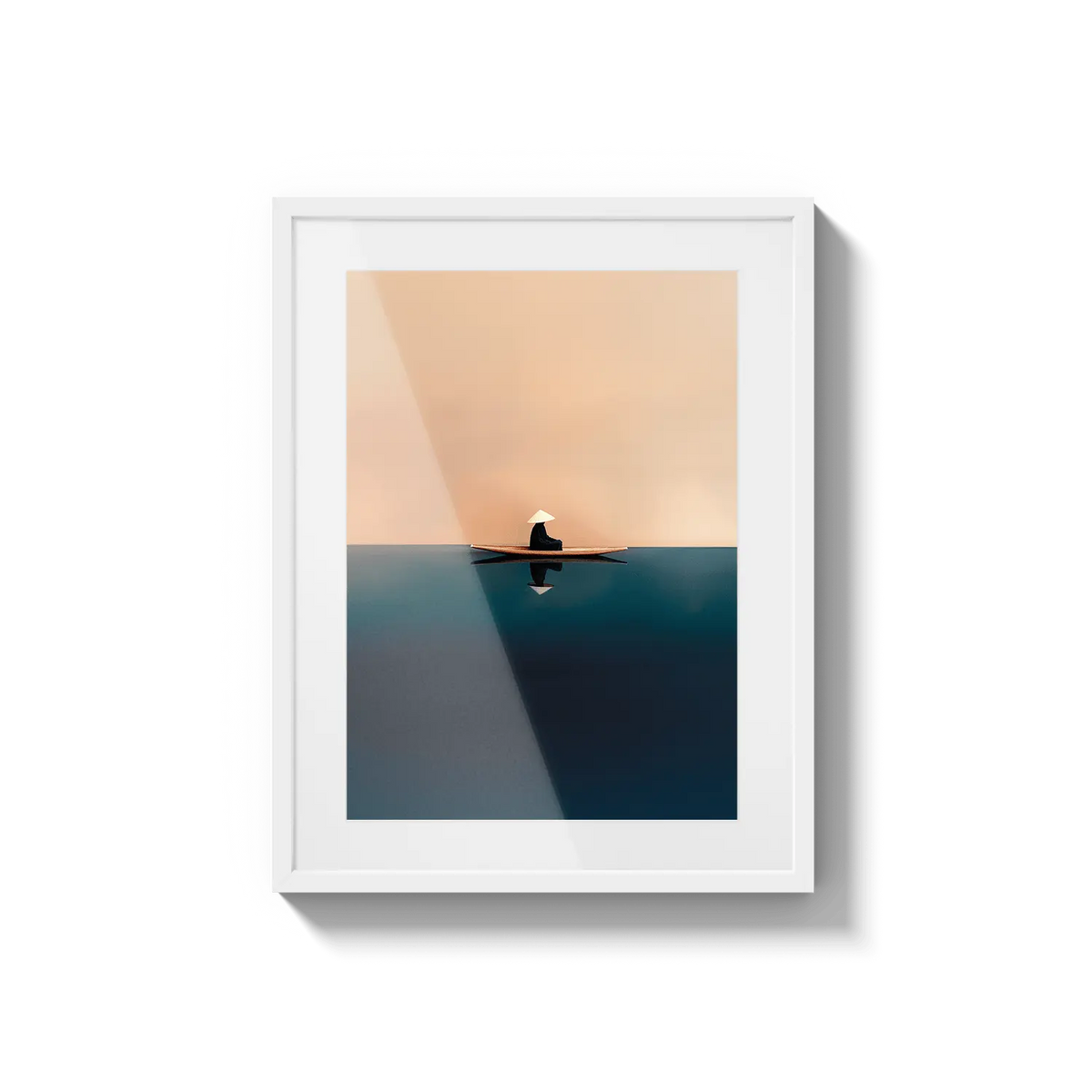 A quiet sailboat drifting across soft orange and blue waters, offering calm and contemplation. A peaceful, grounding gift.