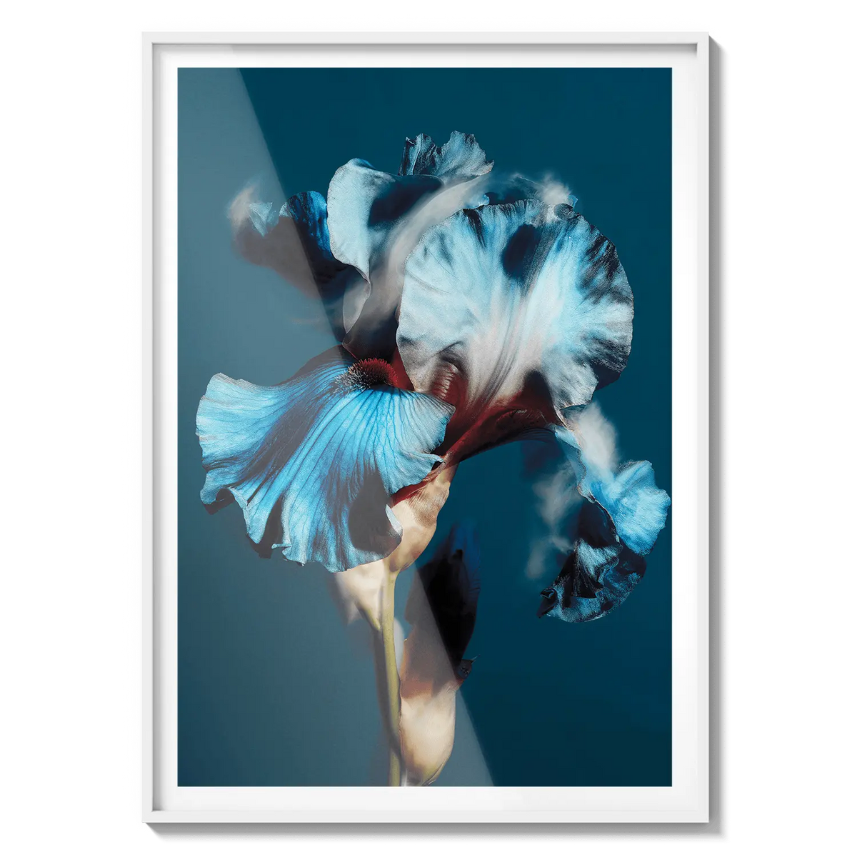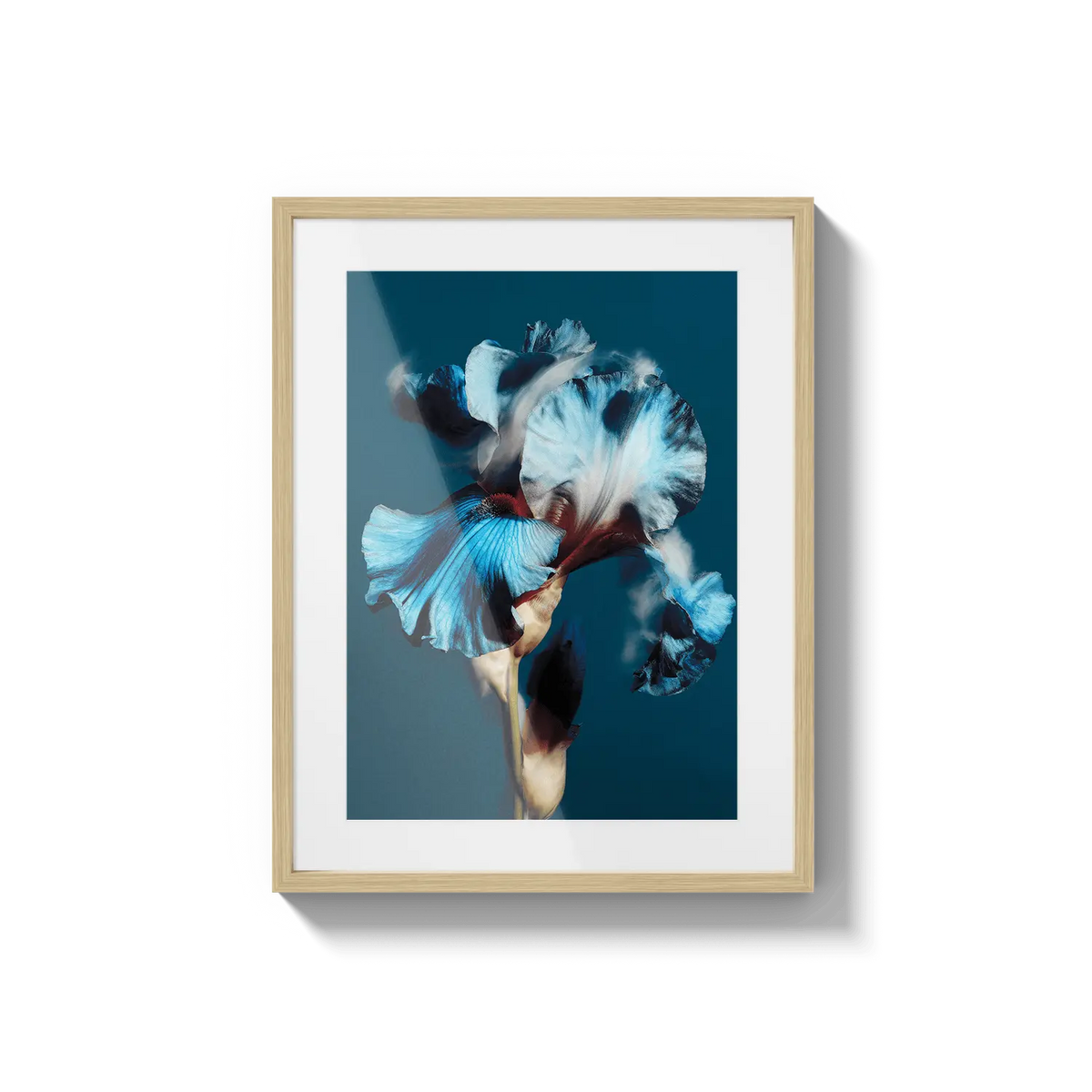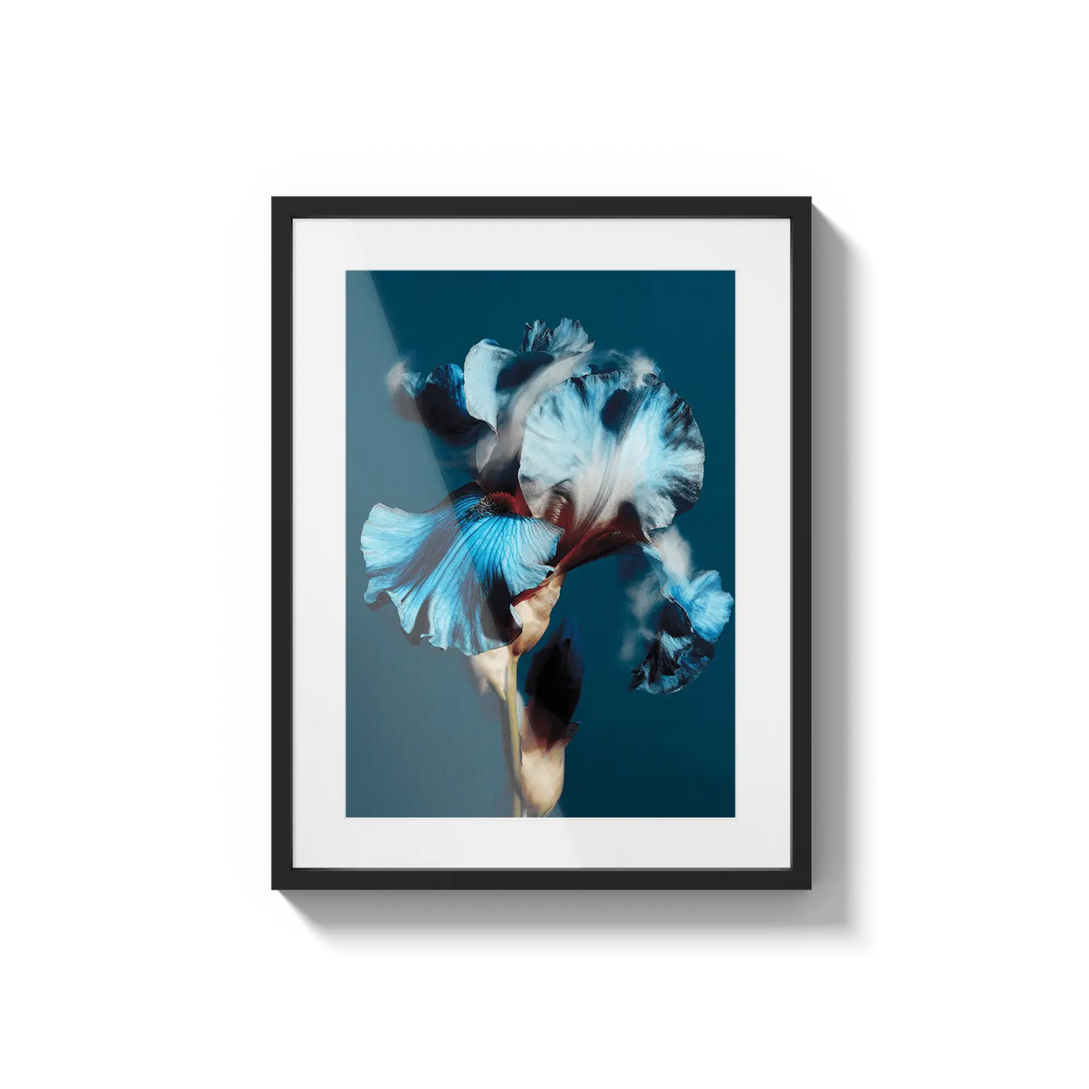 A swirling blue floral-inspired figure filled with movement and freshness. A vibrant and uplifting gesture.