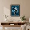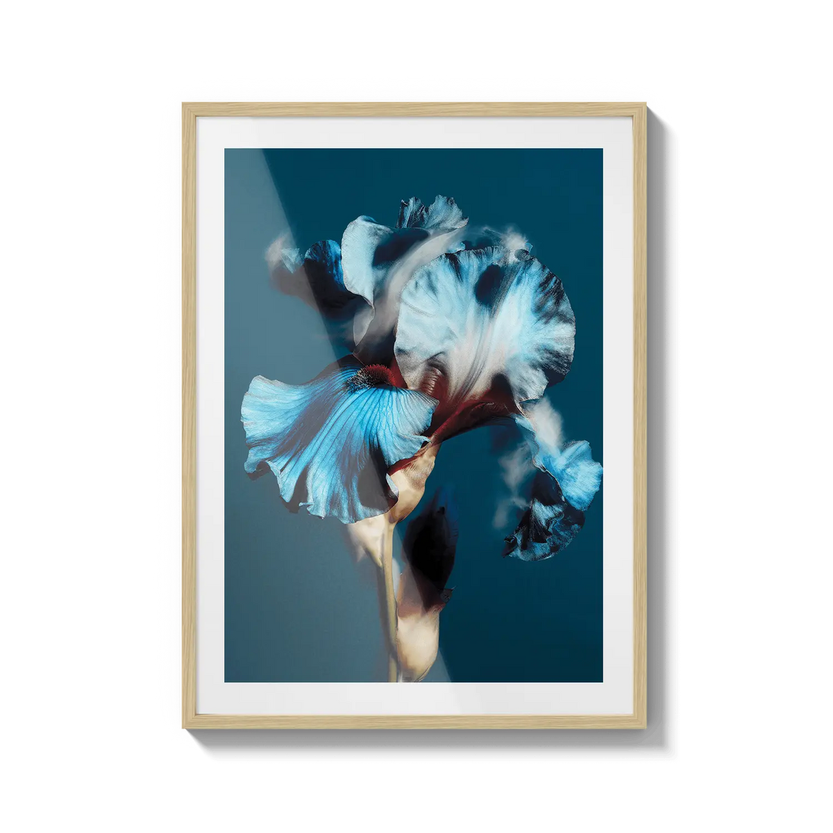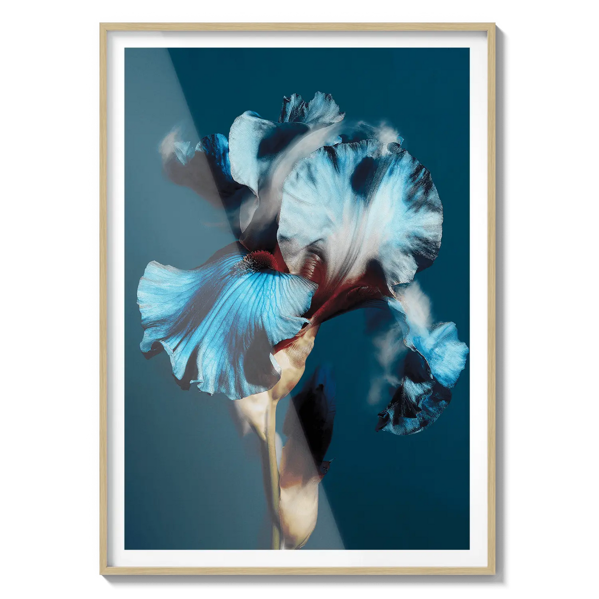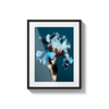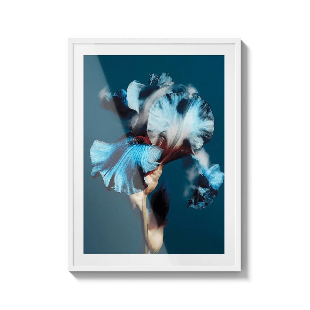 A swirling blue floral-inspired figure filled with movement and freshness. A vibrant and uplifting gesture.