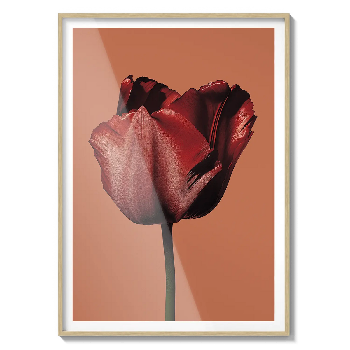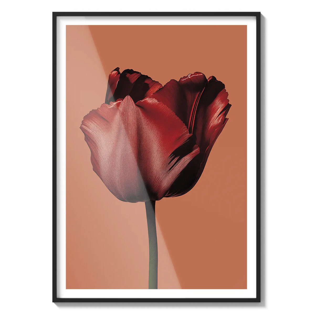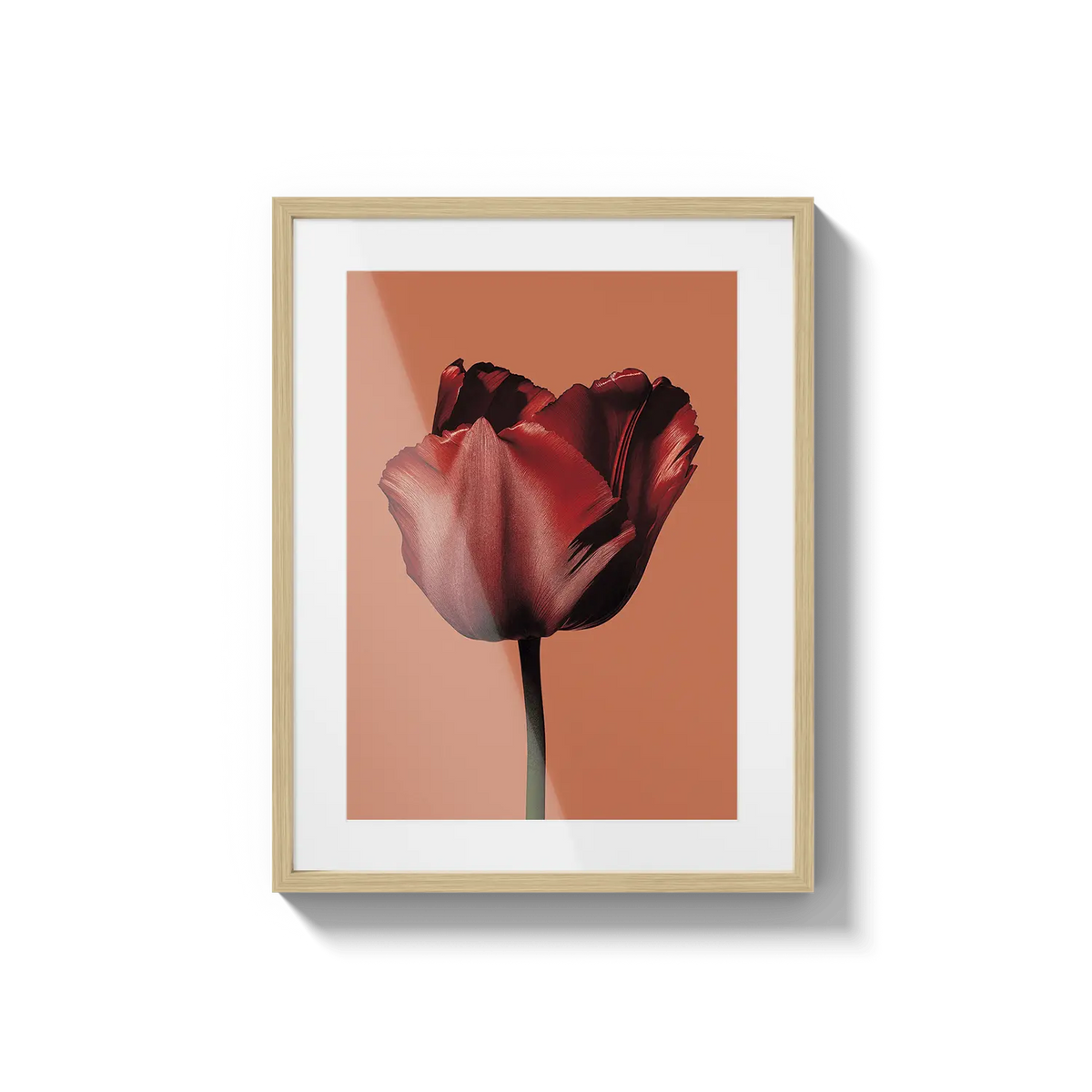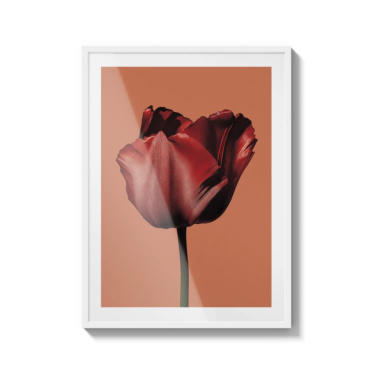 A single red tulip captured with soft elegance, expressing affection with simplicity. A warm gesture for someone dear.