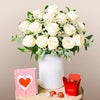 Share a touch of class with your loved ones with our white rose bouquet. With elegance, class and purity a dozen white roses is a graceful way to express your feelings on occasions where only pure emotion will do such as weddings, anniversaries and demonstrations of love.