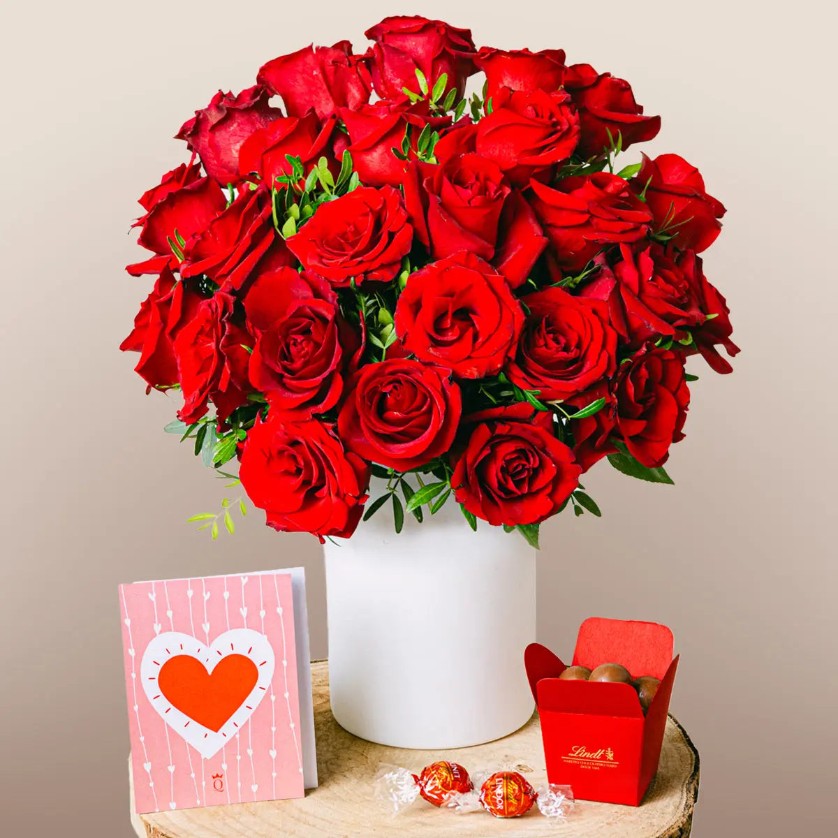 A bouquet of 24 red roses, a symbol of passion and elegance, accompanied by eucalyptus for a fresh and natural touch. Perfect for expressing eternal love, an unmissable opportunity to give a gesture that will remain in the heart forever.