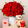 To make this gesture even more special, the deluxe version includes a soft plush toy, delicious chocolates, and a card with a personalized message, adding an extra touch of affection and care.