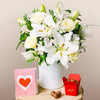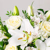 Our exquisite floral arrangement of lilies, roses and white alstroemeria is a manifestation of timeless elegance, perfect as the ideal gift to celebrate unforgettable moments. This arrangement is a sublime expression of love and devotion, destined to illuminate the hearts of those who receive it on special occasions.