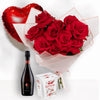 Surpriză la Domiciliu cu Buchet de Trandafiri, Bomboane, Vin Spumant și Balon