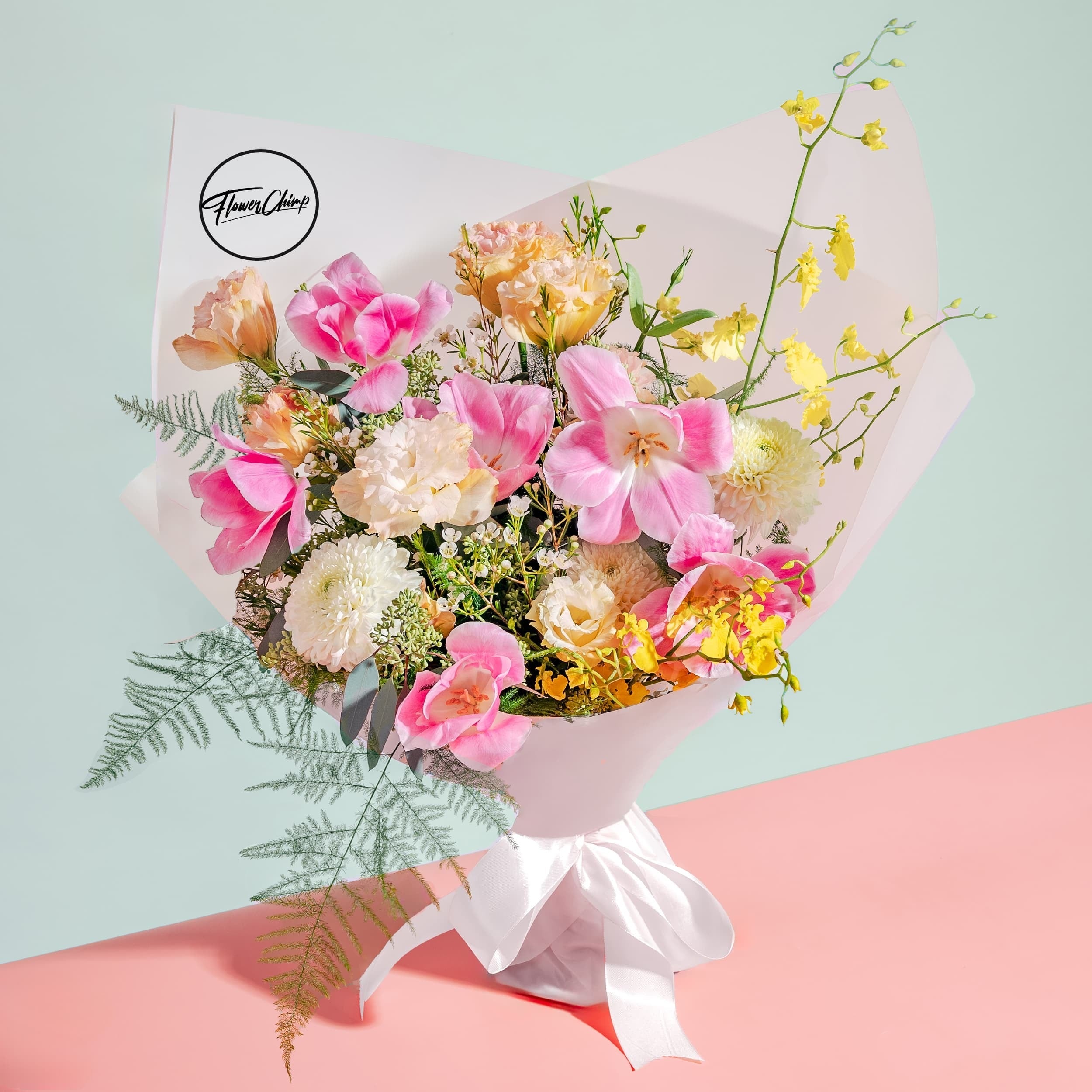 Poți adăuga șampanie, ciocolată, torturi, baloane sau coșuri cadou. Fiecare dintre ele este atent ambalat și livrat împreună cu buchetul tău.