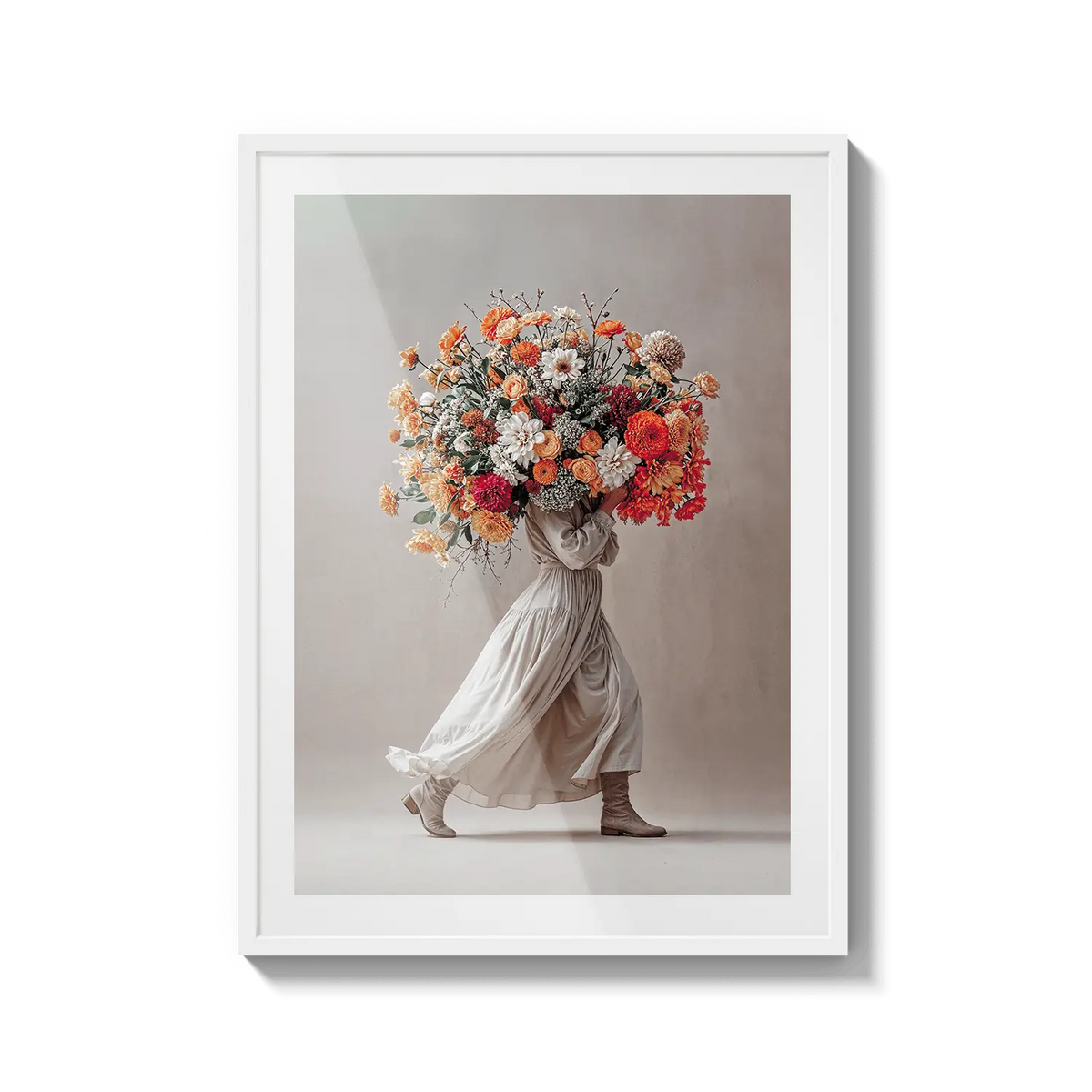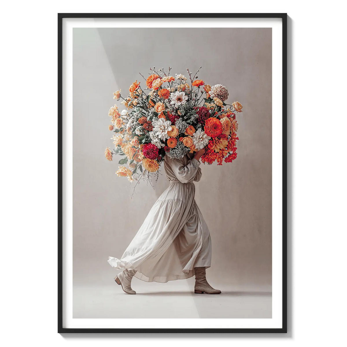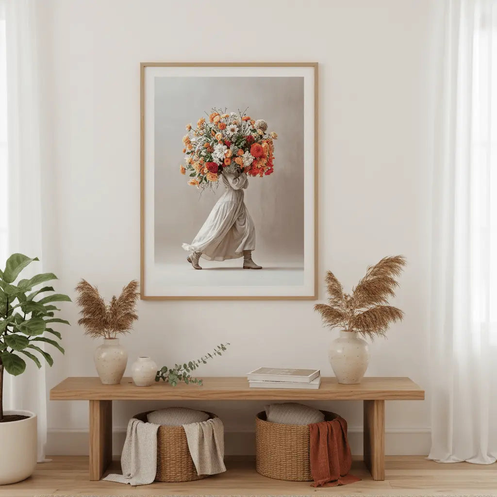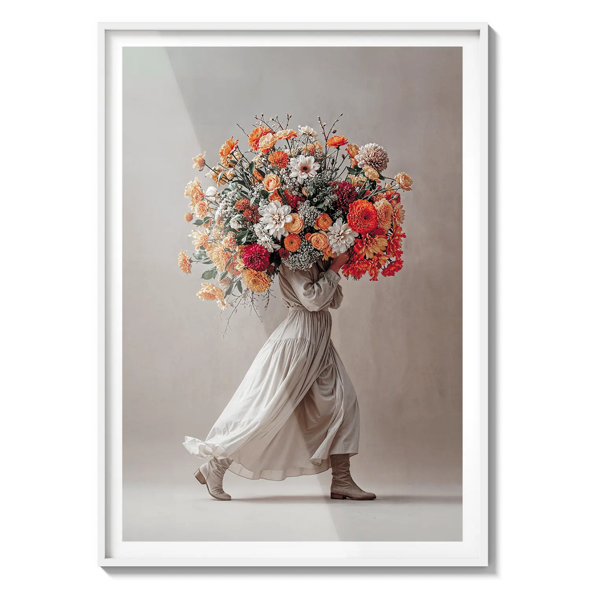 A soft neutral-toned bouquet held with grace, evoking gratitude and care. A warm expression of appreciation.