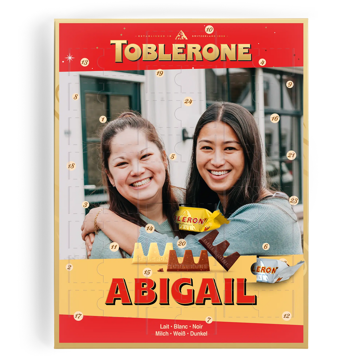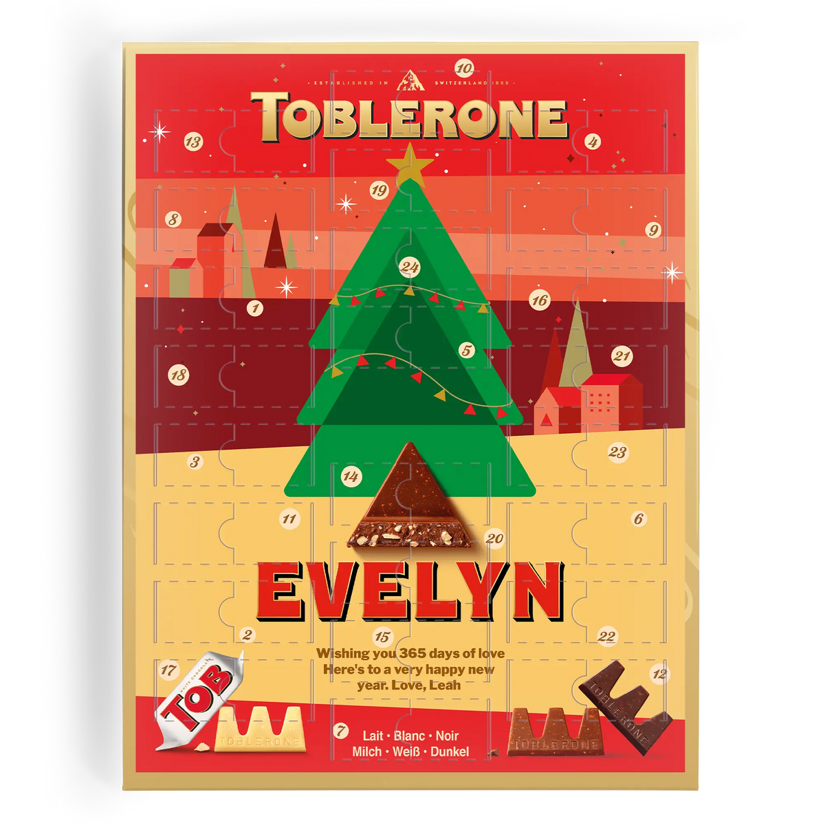 For those who love a personalized touch, the Toblerone Advent Calendar lets you count down to Christmas with 24 delicious chocolates. Add a name, photo, or logo to create a truly unique gift.
